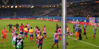 Od początku spotkania Frente Atletico daje popis dopingu. Wraz z czasem śpiewy stają się coraz bardziej żywiołowe, a po zdobyciu pierwszej bramki dla Atletico osiągają apogeum. Na trybunach zapanowała fiesta. Fulham słychać tylko podczas przerw w dopingu Atletico. Podczas spotkania Hiszpanie pozdrawiają nas okrzykiem "Ruch, Ruch, HKS!". Po wyrównaniu Fulham FC, doping nie ustaje. Po 90 minutach remis 1:1. Pierwsza część dogrywki nie przynosi rezultatu i gdy wszyscy liczyli już na rzuty karne, bramkę na wagę zwycięstwa zdobył Diego Forlan.