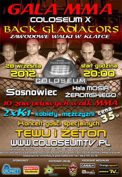 Zapraszamy do udziału w konkursie, w którym do wygrania są dwa podwójne zaproszenia - VIP oraz SUPER VIP - na Galę Zawodowego MMA COLOSEUM X.