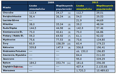 Znając ludność miast oraz to, ile osób z nich oddało w naszej sondzie swój głos, możemy zobaczyć i porównać popularność klubu. Tym razem nie będziemy mieli do czynienia z ujęciem procentowym, ale z liczbą której najmniejsza wartość oznacza największą popularność. Numerem jeden w takim zestawieniu okazuje się ponownie Chorzów, ale różnica do drugich Świętochłowic jest niewielka. Popularność klubu w danej miejscowości jest o tyle ciekawa, że premiuje mniejsze miejscowości i pokazuje innym, że jest jeszcze wiele do zrobienia. Pierwsza czwórka nie jest zaskoczeniem, bowiem w wymienionych miastach mieszkają właściwie sami fani Ruchu.