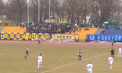 W inauguracyjnym meczu rundy wiosennej na własnym stadionie Elanowcy podejmowali wicelidera tabeli Bytovię Bytów. Mecz był zagrożony z powodu zalegającego na murawie śniegu, jednak dzięki pomocy kibiców działaczom udało się przygotować boisko do gry. W czasie meczu fani Elany wystawili około 300-osobowy młyn, który przez całe spotkanie prowadził doping. Na płotach pojawiło się sporo, bo aż 14 flag: "Władcy Torunia", "[E] W jedności siła /R\", "EZW" (Debiut repliki flagi), "Mokre", "Rubinkowo", "Bielawy", "Belweder", "Bydgoskie Przedmieście", "Ostaszewo", "Ciechocinek", "Golub-Dobrzyń", "Ś.P. Słoma", "Aleksandrów Kujawski" oraz "Rolnicza". Kibiców gości pojawiło się około 40 z 2 flagami. Nieoczekiwanie toruńscy piłkarze wygrali 2:1, co mocno poprawiło nastroje zgromadzonych kibiców Elany.