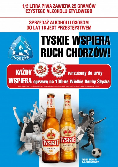 Chorzowski klub oraz jego kibice wraz z marką piwa Tyskie przeprowadzają wyjątkową akcję. Zadanie jest proste. Pijesz piwo Tyskie? Nie wyrzucaj kapsla. Zabierz go ze sobą na mecz lub na zakupy i wrzuć do specjalnej urny. W zależności od ilości uzbieranych kapsli Tyskie wesprze oprawę setnych Wielkich Derbów Śląska!
