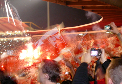 Na boisku zwycięstwo 1:0 "Czerwonej Gwiazdy" po samobójczej bramce jednego z graczy Partizana. Warto dodać, że Crvena stała się właścicielem flagi "Headhunters" swojego lokalnego rywala. Po meczu udajemy się do lokalnych fast foodów w celu zapełnienia żołądka. Między nami multum kibiców zvezdy, było słychać również Polaków, którzy zjechali się na derby. 20 minut później postanawiamy ruszyć na miasto w celu spożycia jakiegoś piwka. Mijamy psy, które zablokowały ulice i 15 minut później znajdujemy się już wśród kibiców Partizana (Zabranjeni)... Z racji tego, że było ciemno i orientacja w terenie była zerowa, postanawiamy wrócić do hostelu dwoma taksówkami.