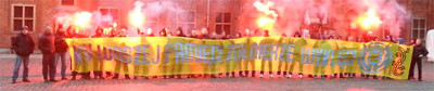 Dzień później wraz z nową flagą Widzewiacy wsparli w około