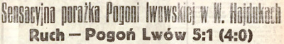 W drugiej kolejce do W. Hajduk przyjeżdża Pogoń Lwów, która była niezwykle silną drużyną i głównym obok Cracovii faworytem wygrania Ligi. Sądzicie, że teraz są umniejszane sukcesy Ruchu? Wystarczy spojrzeć na tytuł artykułu z prasy. To nie Ruch wygrał, tylko Pogoń przegrała..