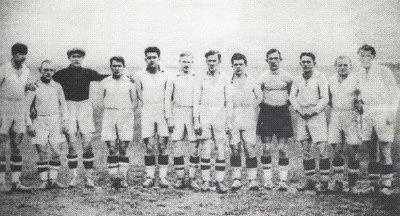 Zawodnicy, pierwsi Mistrzowie Polski A.D. 1933 w barwach Ruchu.