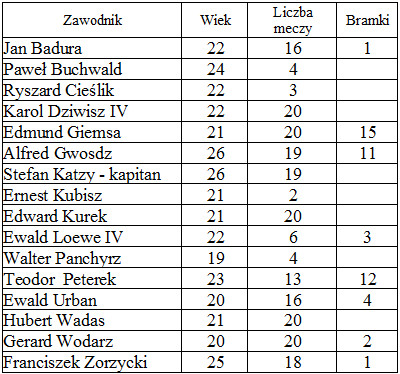 Ruch wystąpił w składzie: Kurek - Wadas, Katzy, Zorzycki, Badura, K. Dziwisz, Urban, Giemsa, Peterek, Loewe, Wodarz.