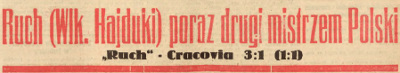 Ruch zdobył po raz drugi z rzędu mistrzostwo Polski, choć iluzoryczne szanse miała jeszcze Cracovia. Musiała jednak wygrać w dwóch ostatnich meczach różnicą ponad 40 bramek, przy założeniu, że Ruch przegrałby oba swoje spotkania. Ciekawy komentarz pojawił się w prasie śląskiej: