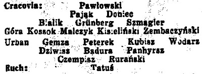 Drużyna Ruchu w całej pełni zasłużyła na tak wysokie zwycięstwo. Chwilami zagrywała koncertowo i bardzo skutecznie, przyczem na plan pierwszy wybijała się pomoc, w której Badura był najlepszy. Cztery bramki zdobył Peterek, jedną Giemsa.