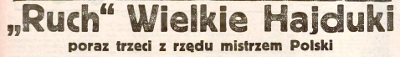 Drużynę Ruchu chciał oglądać każdy kibic w Polsce. W wielu meczach, w których grali piłkarze z eRką na piersi padały rekordy frekwencji. Brak Ernesta Wilimowskiego odbił się na jakości gry tej drużyny, ale gracze rezerwowi walką, ambicją i zaangażowaniem zdobyli trzecie mistrzostwo Polski. Suma szczęścia i nieszczęścia w tym sezonie wyszła na zero.