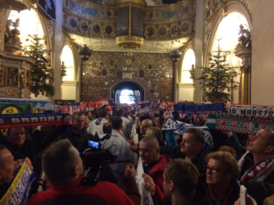 Warto dodać, że mszę świętą wzbogacił tenor Sylwester Targosz-Szalonek. W programie pielgrzymki znalazł się także m.in. wykład Wojciecha Sumlińskiego poświęcony mordom założycielskim III RP, zaś okolicznościową oprawę przygotowali tym razem fani Lecha. Miało to związek z okrągłą rocznicą poznańskiego Czerwca. Zapraszamy do obejrzenia kilku zdjęć.