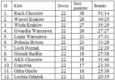 Nie ulega wątpliwości, że Unia przechodzi spadek formy. Zawodnicy są już wyraźnie zmęczeni i w czasie 90 minut nie potrafili się skupić do przemyślanych akcjach, rozgrywając jeden z najsłabszych meczy w tym sezonie. Na drugie miejsce w tabeli wskoczyła drużyna Wawelu Kraków, ale przewaga ciągle wynosiła 6 punktów. Sezon powoli dobiegał końca, ale drużyna Ruchu miała przed sobą serię 3 meczów wyjazdowych, pierwszy z nich odbył się w przedostatni dzień wakacji, 30 sierpnia. Przeciwnikiem była Wisła Kraków. Na trybunach 30 tysięcy kibiców. Prasa o meczu napisała: