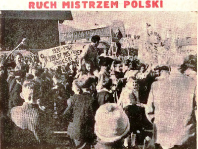 Jest rzeczą doprawdy zastanawiającą skąd ludzie biorą jakieś przedziwne trąbki, rogi myśliwskie, dzwonki i dziesiątki jeszcze instrumentów, które potrafią narobić tyle hałasu. Chyba nigdy się tego nie dowiemy, tak samo jak trudno dociec, skąd wzięło się na boisku Ruchu tyle rakiet, które robiły wrażenia wystrzałów armatnich (...) I długo jeszcze, nawet w godzinach wieczornych krążyły ulicami Chorzowa rozśpiewane, rozradowane grupy i grupki, a zapadający zmrok rozjaśniały białe transparenty "Ruch mistrzem Polski".