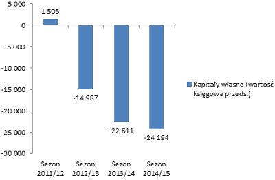 7,7 mln zł - tyle obecnie wynoszą odsetki, które musi spłacić klub. Jeszcze w sezonie 2011/12 wynosiły 2,2 mln zł i z każdym sezonem stopniowo narastały. Przedstawia to dokładnie diagram numer 3. Narosły do tego stopnia, że ich spłata przy bieżącym funkcjonowaniu klubu stała się niemożliwa.