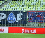 Niestety piłkarze nie dawali nam powodów do radości i już w 13. minucie przegrywali dwoma bramkami. Pomimo słabej gry i naszej liczby prowadziliśmy doping praktycznie przez całe spotkanie, z lepszymi i gorszymi momentami. Klasycznie zaakcentowaliśmy "Jesteśmy zawsze tam..." i nie zapomnieliśmy również o pozdrowieniach dla naszych zgodowiczów i układowicza, którym dziękujemy za wsparcie.