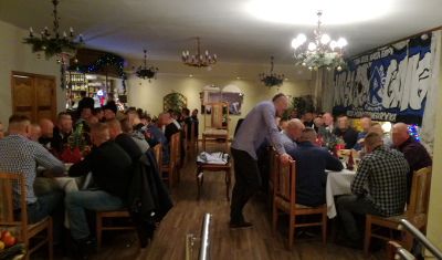 "W piątkowy wieczór spotykamy się w kibicowskim gronie na tradycyjnej Wigilii NRŚL. Okres Świąt Bożego Narodzenia to czas refleksji i podsumowań, dlatego też nasze spotkanie rozpoczynamy kilkunastominutowym filmikiem, który w telegraficznym skrócie streścił nasze działania w 2017 roku. Później już tradycyjnie opłatek, życzenia i wspólna kolacja, przy której nie brakowało rozmów nad ambitnymi przyszłorocznymi planami. Spotkanie przebiegło naprawdę w świetnej atmosferze i widać, że rudzki skład jest w rewelacyjnej formie, a zapał i plany na nadchodzący rok są bardzo duże! Jak na kibicowską wigilię przystało nie mogło zabraknąć pirotechniki i pozdrowień dla chłopaków po drugiej stronie muru. Wszystko w asyście przygotowanego na tę okazję transparentu BRACTWO RUDZKIE. Przed nami święta czas odpoczynku w gronie rodziny i przyjaciół. Korzystajcie z tych chwil i ładujcie akumulatory, bo już od nowego roku ruszamy z niebieską ofensywą ;-)"