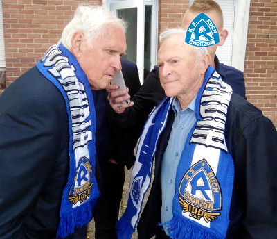 Po mszy dostaliśmy zaproszenie na poczęstunek, gdzie mieliśmy ogromny zaszczyt siedzieć w towarzystwie żywych Niebieskich Legend, a mianowicie Joachima Marxa oraz Bronisława Buli! Zostaliśmy bardzo ciepło odebrani i zasypani podziękowaniami za przybycie.
