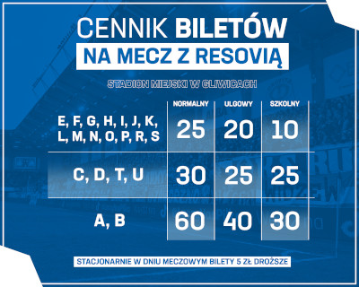 Mecz z Resovią odbędzie się w sobotę, 6 maja na Stadionie Miejskim w Gliwicach przy ul. Okrzei 20. Początek spotkania zaplanowano na godz. 17:30.