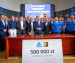 Podczas spotkania Prezydenci Chorzowa Andrzej Kotala i Marcin Michalik złożyli gratulacje za awans do PKO BP Ekstraklasy. Włodarze Miasta docenili sukces Ruchu i podjęli decyzję o przyznaniu Klubowi premii finansowej w wysokości 500 tys. zł. Symboliczny czek trafił do rąk prezesa Seweryna Siemianowskiego. (Ruch Chorzów)
