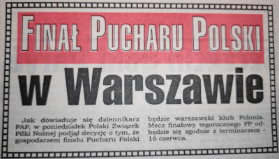 Wiadomo było, że na mecz finałowy będzie chciało się wybrać mnóstwo kibiców Niebieskich, ale nie wiadomo było nawet dokładnie, gdzie to spotkanie się odbędzie. Dopiero we wtorek 4 czerwca Polska Agencja Prasowa poinformowała, że finałowe spotkanie Pucharu Polski zostanie rozegrane na stadionie Polonii Warszawa przy Konwiktorskiej 6.