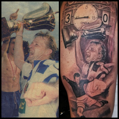 Foto z okładki tygodnika "Piłka Nożna". W roli głównej Mirosław Bąk, przeniesiony na tatuaż przez jednego z kibiców.