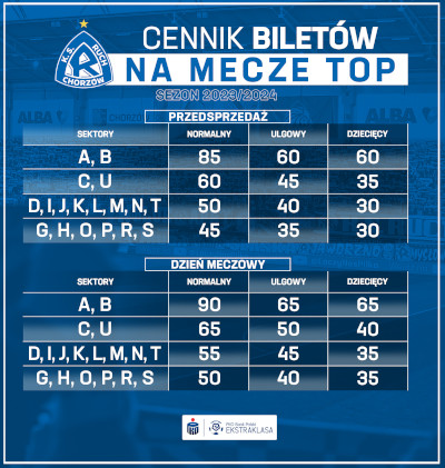 Na powyższe mecze będzie obowiązywał następujący cennik biletów: