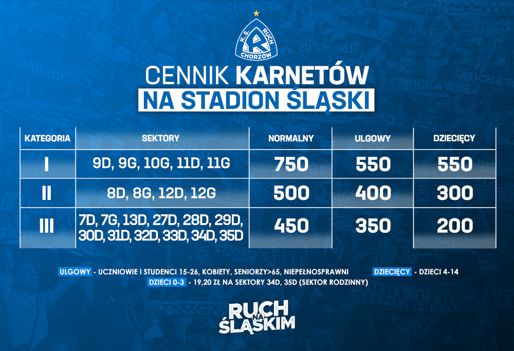 gwarancja udziału we wszystkich 12 meczach ligowych rozgrywanych na Stadionie Śląskim, w tym hitowych spotkaniach z Górnikiem Zabrze, Lechem Poznań, Legią Warszawa i Widzewem Łódź.