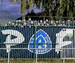 Zbiórkę zaplanowano w samo południe na naszym stadionie, skąd godzinę później wyruszyliśmy w drogę w sile autokaru i kilku samochodów. Droga minęła spokojnie, z wejściem na obiekt również nie było większych problemów. Mamy ze sobą dwie flagi "PF" i mniejszą wersję "Chacharów", które wieszamy na płocie. Co do dopingu to był raczej sporadyczny (szczególnie w drugiej połowie) i ograniczony do kilku okrzyków. Trochę głośniej zrobiło się tylko po bramkach dla Ruchu.