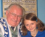 - Jasne że akceptuje. Zdarzało się brać na mecze cało rodzina. Pamiyntom mecz z Górnikiem w 1973 wygrany 3-2 kaj na stadion niy szło wleźć, bo było ponad 30 tys. ludzi, wtedy miejsca na Cichej były stojące, to my przełazili przez płot z żoną i małymi wtedy dziećmi. Wnuk Artur kiery do dziś zagorzale kibicuje Niebieskim groł w piłka na stoperze i nawet mioł propozycja iść do Wisły Kraków ale woloł nasze strony. Udało mu się też zagrać na Ruchu jak był juniorem w LKS Goczałkowice.