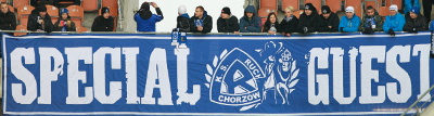 Sektor gości został bardzo dobrze oflagowany. Oprócz debiutujących flag - ogólnej