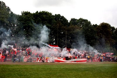 Podzieleni na dwie grupy fani RTS-u prowadzili doping na dwie strony wzajemnie się motywując oraz wymieniając "uprzejmości" ;). Zakończyła się dobra passa Widzewa, który przegrał 1:3. Taki sam wynik miał również miejsce w spotkaniu z Pogonią Szczecin.