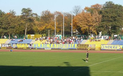 Elana Toruń Mecz z Górnikiem Polkowice nie przerwał fatalnej passy piłkarzy Elany Toruń, którzy przegrali to spotkanie 0:2 i nadal zajmują ostatnie miejsce w tabeli. Podczas meczu zadebiutowały 3 nowe flagi Elanowców: "Ś.P. Słoma", "Bydgoskie Przedmieście" oraz "Rolnicza". Przyjezdni przybyli w 12 osób z 4 flagami oraz machajkami na kijach.