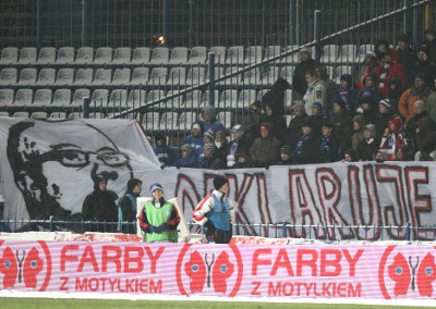 Fani "Niebieskich" podczas Wielkich Derbów Śląska pokazali, że nie są zadowoleni z pracy prezydenta Chorzowa, Andrzeja Kotali. Na sektorach wzdłuż boiska rozciągnęli transparent z jego podobizną oraz słowami "DEKLARUJĘ, ŻE POD MOIMI RZĄDAMI BUDOWA STADIONU NABIERZE TEMPA", a na drugim dopisali "ZA SKŁADANIE FAŁSZYWYCH OBIETNIC ZOSTANIESZ WYGNANY". Później zgromadzeni na stadionie kibice skandowali "kaj momy stadion, Kotala kaj momy stadion?" oraz "obiecałeś, obiecałeś!".