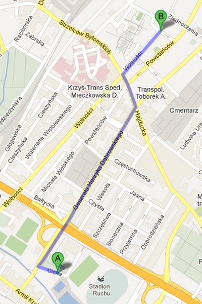 przy stadionie Ruchu (od strony hali, skąd można dojechać na miejsce zbiórki autobusem, oraz od Alei Bojowników o Wolność i Demokrację, skąd można podjechać trzy przystanki tramwajem linii "20")
