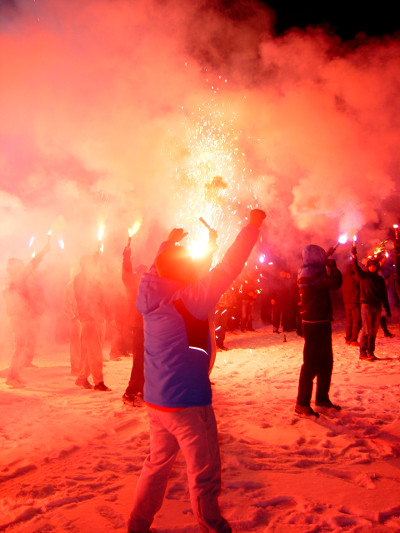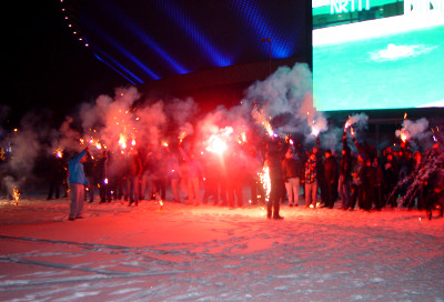 Pokaz pirotechniczny FC Niebieskie Katowice pod "Spodkiem"