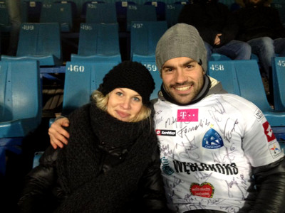 Tomasowi Joslowi nie udało się zrobić wielkiej kariery w Ruchu, ale nie zapomniał o klubie, w którym spędził rok. Czeski obrońca, ubrany w białą koszulkę "Niebieskich" z autografami kolegów ze swojej byłej drużyny, dopingował chorzowian podczas meczu z Jagiellonią Białystok. Josl zasiadł na trybunie głównej wraz ze swoją partnerką, Kateriną. Oto zdjęcie, które zamieścili później na Facebooku.