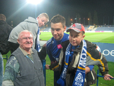 Powyżej radość Pana Antoniego po strzeleniu 2 gola przez Ruch w meczu z Lechią, meczu dającego wicemistrzostwo Polski w 2012 roku.