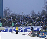 4300 widzów, jednak młyn nie zachwycał jakąś większą frekwencją. Doping fanów Ruchu można ocenić jako przeciętny, ale cóż, i tak stał na dużo wyższym poziomie niż gra piłkarzy. Pomimo straty bramek piosenka "Niebiescy hej..." w ostatnich 15 minutach robiła naprawdę ogromne wrażenie. W repertuarze nie zabrakło wymiany "uprzejmości", jednak po groźnych okrzykach z sektora gości młyn Ruchu głośno nawoływał "prosimy was, nie bijcie nas" ;-) W przerwie rozrywki dostarczył zalegający na trybunach śnieg, który posłużył jako amunicja do trwającej niemal 15 minut wojny na śnieżki pomiędzy sektorami.
