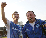 Było też w tej pierwszej rundzie kilka potknięć. Poza wspomnianą porażką w Sosnowcu, przegraliśmy też 0-1 z Jagiellonią w Chorzowie oraz w sposób całkowicie niewytłumaczalny 0-4 z broniącą się przed spadkiem Unią Janikowo. Najważniejszą informacją dla wszystkich kibiców Niebieskich na koniec tego skądinąd udanego 2006 roku dla Ruchu jak i dla mnie osobiście było to, iż na półmetku rozgrywek I-ligowych zajmujemy pozycję lidera oraz gramy dalej w rozgrywkach Pucharu Polski, w których odprawiliśmy z kwitkiem Polonię Warszawa (6-0 w Chorzowie) oraz wielkiego faworyta Wisłę Kraków i to po zwycięstwie w Krakowie 2-1 (gole Barana i Łudzińskiego).