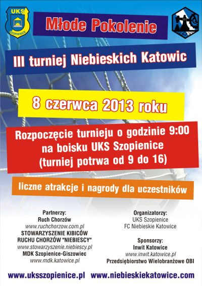 Już jutro odbędzie się III turniej Niebieskich Katowic "Młode Pokolenie", który organizowany jest przez UKS Szopienice oraz Fan Club Niebieskie Katowice.