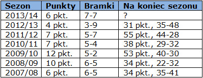 Maksymalnie do zdobycia możliwych było 15 punktów. Jak pokazuje zestawienie, bywało lepiej, ale bywało i gorzej. Trzeba też pamiętać, że naszym rozkładzie była już Legia, Lech i Górnik, przy czym dwie pierwsze ekipy podejmowaliśmy u siebie. Najlepiej byłoby porównać dorobek punktowy w starciach z tymi samymi rywalami. Z powodu absencji Cracovii oraz Górnika nie jest jednak możliwe.