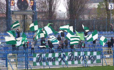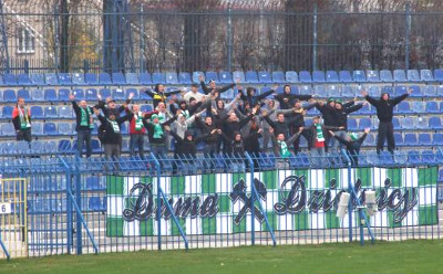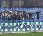 37 osób oraz zaprezentowali flagowisko w barwach swojego klubu. Mecz, który "Niebiescy" wygrali 2:1 po bramkach Sadloka i Lipskiego, obejrzało łącznie około 150 widzów. (Niebiescy.pl / fot. Tifosifoto)