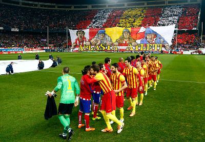 Mecz "Atleti" z "Barcą" obejrzał komplet, 54800 widzów. Kibice gospodarzy zaprezentowali efektowną oprawę, na którą składała się kartoniada w barwach klubu oraz okazała sektorówka z napisem "Aplasta Atleti" (aplasta - miażdży), która została zawieszona na słupach. Razem z grupą "Frente Atletico" na meczu obecnych było