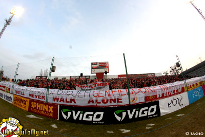 6000 widzów. Pomimo dramatycznej sytuacji na boisku, gdzie Widzew przegrywał 0:2 Władcy Miasta Włókniarzy zdołali wywalczyć cenny punkt, remisując ostatecznie 2:2 po ciężkiej walce. Atmosfera głównie w końcówce spotkania była gorąca jak walka na murawie. Na płotach natomiast można było zauważyć m.in. flagi: "FC WLKP", "Kalisz" oraz "Drezdenko".