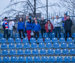 13 (słownie: trzynastu) fanów Podbeskidzia. "Niebieska Szarańcza" jak zwykle przez cały mecz dopingowała swoją drużynę. W centralnym miejscu młyna zawisły flagi "Psycho Fans" oraz "Chuliganeria". Pojawiły się ponadto: "Pszów", "Kęty", "Radlin", "Ruch Chorzów", "Śląscy Ekstremiści", "Świętochłowice", "Widzew Łódź", "NRŚL Gang", "Racibórz", "Szopienice", "Nakło Śląskie", "Mikołów", "Siemianowice", "Niebieskie Katowice", "Blue Elite", "19 /R\ 20".