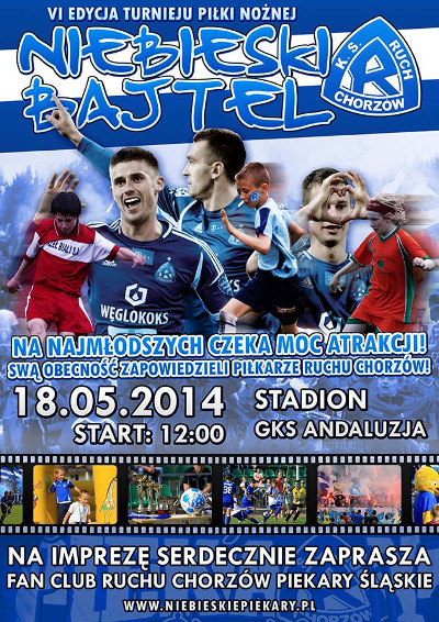 Impreza dedykowana dzieciom odbędzie się na stadionie Andaluzji Piekary Śląskie przy ul. Marii Curie Skłodowskiej 49. Na najmłodszych czekać będzie wiele atrakcji, a swoją obecność zapowiedzieli ponadto piłkarze Niebieskich! Poniżej prezentujemy oficjalny plakat turnieju.