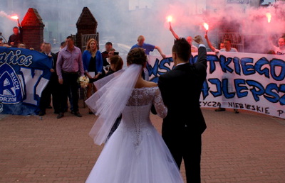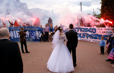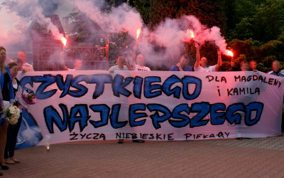 Kibice chorzowskiego Ruchu zrobili wielką ślubną niespodziankę fanatykowi Niebieskich z Piekar Śląskich, Kamilowi. Gdy Młoda Para wyszła z kościoła po ceremonii zaślubin, czekało na nią kilkudziesięciu sympatyków z flagą "Piekary", transparentem "Wszystkiego najlepszego dla Magdaleny i Kamila życzą Niebieskie Piekary", 25 racami oraz ze śpiewem na ustach. Kamilowi oraz Magdalenie serdecznie gratulujemy i życzymy wszystkiego niebieskiego na nowej drodze życia!