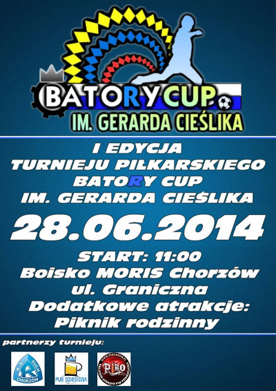 Już w sobotę, 28 czerwca odbędzie się I edycja turnieju piłkarskiego "BatoRy Cup" im. Gerarda Cieślika. Poza zmaganiami piłkarskimi organizatorzy zapowiadają piknik rodzinny, na który serdecznie wszystkich zapraszamy.