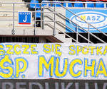 Drużyna Ruchu w żaden sposób nie odpowiada za takich stan rzeczy, więc jej kibice zrobili wszystko, by stworzyć na trybunach (a raczej trybunie) atmosferę piłkarskiego ¶więta. "Niebieska Szarańcza" przywiozła do Gliwic całkiem sporo flag, w¶ród których znalazły się: "To My Naród ¦l±ski", "Ruch Chorzów", "Oberschlesien", "¦l±scy Ekstremi¶ci", "Niebieskie Katowice", "¦więtochłowice", "Siemianowice", "NR¦L Gang", "19 /R\ 20", "Radlin" oraz "Bandycki Batory". Na płocie pojawił się również transparent dla naszego zmarłego przyjaciela, który był najwierniejszym fanatykiem toruńskiej Elany - "¦p. Mucha - jeszcze się spotkamy".