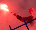 Zabawa "Niebieskiej Szarańczy" po meczu w Szczecinie