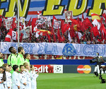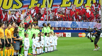 Atletico Madryt, w obecności około 54 tysięcy widzów, wygrało u siebie 1:0 z Juventusem Turyn. Ekipa "Frente Atletico" pamiętała o zbliżających się Wielkich Derbach Śląska i zaprezentowała transparent "DERBY DLA RUCHU".
